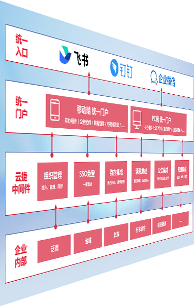 对协作平台提供支持服务,,,支持企业应用与协作平台对接,,包含组织同步、、、、消息集成、、、待办集成等。。。。支持目前主流的协作平台:钉钉、、企微和飞书。。。。