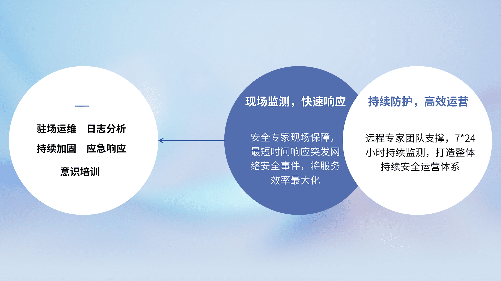 7X24小时持续监测安全事件,保持安全策略有效性,降低资产脆弱性风险,,,精准拦截黑客攻击,,减少被黑客利用的机会,,第一时间遏制,,,降低损失。。